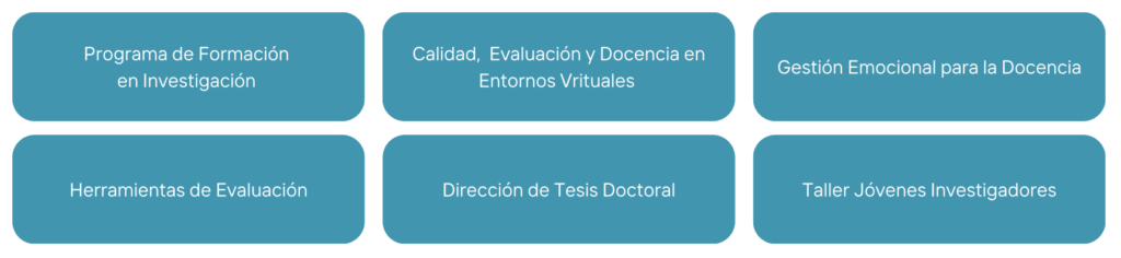 Finalmente, en el contexto de una oferta de formación que responda a los intereses y las necesidades diferenciadas de los docentes y de la agenda institucional y educativa del país, Docentia pone a su disposición cursos complementarios. Estos corresponden a cursos en colaboración con otras unidades de la Universidad u propios del Centro que abordan actuales y variadas temáticas, independientes de la Ruta Formativa.
